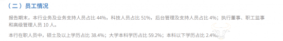 不过这也并不能只看占比,要结合企业整体员工人数来看,那么微众银行在职员工有多少呢?其并未披露。