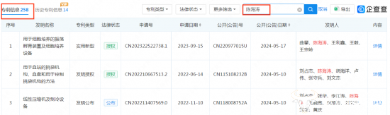 运营商财经网也注意到,陈海涛曾在2013年获得国家科学技术进步奖二等奖。此外,他还是多项专利的发明人之一。截至今年5月19日,企查查公布的海尔生物专利信息中,有258项专利是陈海涛参与发明,其中有效的160项。作为公司高管,在工作中参与发明这么多项专利,虽然大多数是实用新型专利,也实属不易。