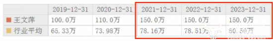 根据东方雨虹历年财报,2021-2023三年间,副总裁王文萍年薪均为150万元,比董事长李卫国还要多65万元。有意思的是,这三年间东方雨虹其他高管的薪酬也一直未变。