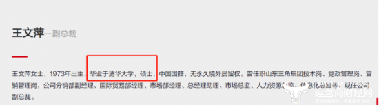 王文萍曾就职于山东三角集团,分别在技术岗、党政管理岗、营销管理岗历练过。那个时代的清华大学硕士很少,清华大学硕士毕业的人会去山东三角集团工作?
