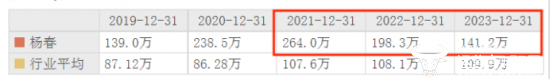 新浪财经显示,2018年4月,杨春上任惠达卫浴副总经理,至今上任已有6年。根据公司2023年财报,副总经理杨春年薪为141.2万元。然而,这并不是近年来他获得的最高薪酬,2021年他的年薪曾高达264万元,两年降薪122.8万元。