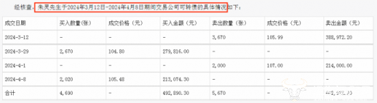 公告中也提到,朱灵已经“主动将此次交易所得收益人民币6214.66元全数上缴公司。”
