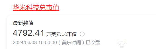 在资本市场上,截至2024年6月3日,华米科技收盘价为每股0.799美元;而其总市值约为4792.41万美元。