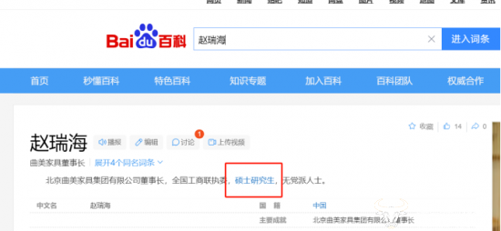 1987年,22岁的赵瑞海创立建华工贸公司,这是曲美家居的前身。由此看来,他的博士是在工作期间读的,那他的第一学历是什么?暂不明确。而且,曲美家居的一些资料及百度百科还写他是硕士学历。