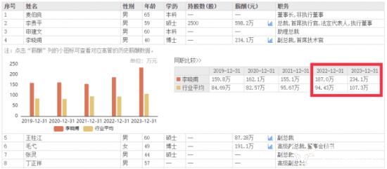 东方财富网显示,2023年李晓甫的年薪为234.1万元,与2022年的187.0万元相比,增长了47.1万元。而同为副总裁的王柱江去年薪酬只有87.28万元,李晓甫比他高多了。