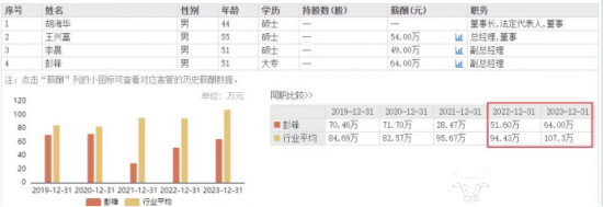 东方财富网显示,2023年彭锋的薪酬为64万元,与2022年的51.6万元相比,上涨了12.4万元,在公司高管之中排在第一位,比总经理王兴富还要高。