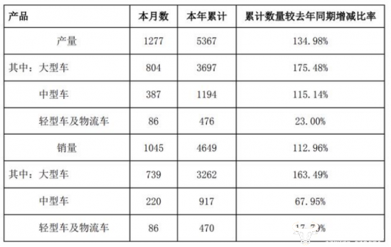 值得注意的是,日前,中通客车公布了2024年5月份的产销数据。报告显示,该月的销量为1045辆,同比增长112.96%。其中大型车销量为739辆,同比增长163.49%;中型车销量为220辆,同比增长67.95%;轻型车及物流车销量为86辆,同比增长17.79%。今年1-5月中通客车累计销量为4649辆。