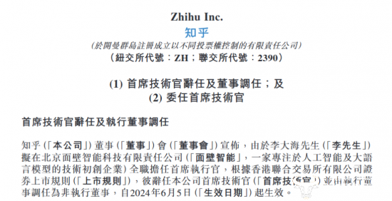 直至近期,他跳槽到了知乎。6月5日晚,知乎发布公告称,由于李大海拟在面壁智能全职担任首席执行官(CEO),因此辞任公司首席技术官(CTO)并由执行董事调任为非执行董事,同时委任孙斌为新的CTO。