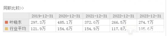 回顾叶晓东过去几年的薪酬,不难发现他的待遇一直不错,在2020年薪酬曾达到485.1万元。