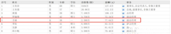 据东方财富网显示,硅宝科技共有五位副总,方丽的薪酬排在第二,是77.64万,在她之上的是副总邱小魁,他的年薪为79.48万。邱小魁是硕士学历,在2022年5月升任副总一职。