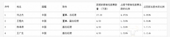 今年4月,副总经理王广生出现在公司2024年限制性股票激励计划首次授予激励对象名单中。他获授限制性股票4.50万股,占授予限制性股票总数的1.316%。值得一提的是,该名单中还包括公司副总经理王稳夫、陈海涛、巩燚、张吉等人。