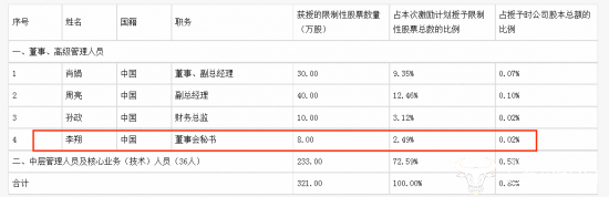 其中,董事会秘书李翔获授限制性股票8万股,占这次激励计划授予限制性股票总数的2.49%。按今年6月5日好太太收盘价每股13.50元计算,他的这部分股票价值约为108万元。