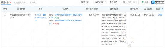 其裁判结果显示,“被告香河理想嘉业房地产开发有限公司于该判决生效后五日内给付原告深圳市凯迪仕智能科技股份有限公司货款、质保金共计2044.16万元及利息。”