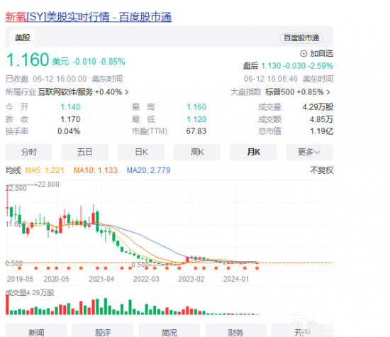 新氧上市首日股价报收19.75美元,此后在当年5月31日录得历史最高股价22.80美元。然而今年来,新氧股价似乎并不太景气,离“1美元退市”的底线相近,今年6月14日收盘时,新氧股价报收1.105美元,相比早年的股价已是断崖式下滑。