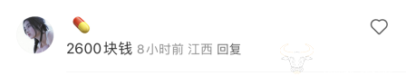 账号IP在江西的网友透露,2600块钱。
