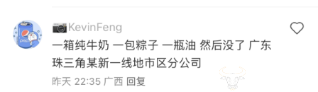 一位自称是广东珠三角某信义线地市区分公司员工的网友透露自己的端午福利包括:一箱牛奶,一包粽子,一瓶油。