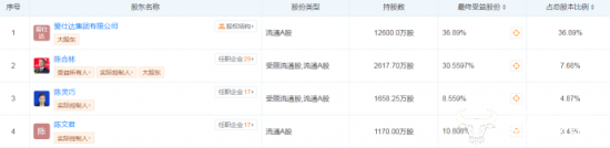 陈文君出生于1980年3月,他比妹妹陈灵巧大3岁左右。值得一提的是,爱仕达家族企业色彩浓厚。天眼查显示,目前爱仕达的前四大股东是爱仕达集团有限公司、陈合林、陈灵巧、陈文君,分别持股36.89%、7.68%、4.87%、3.43%。