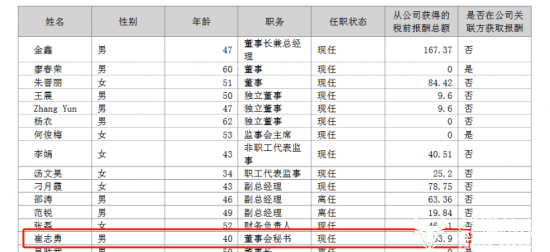 去年,崔志勇从公司获得的税前报酬总额为53.9万元,相较2022年度涨薪了6.52万元,但总体仍不高,还不及行业平均水平。