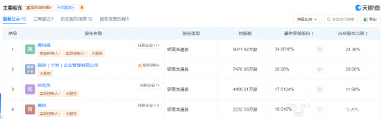 天眼查显示,德昌股份实际控股人为黄裕昌、张利英、黄轼,三人分别直接持有公司24.36%、11.99%、6.00%股份。另外,还通过昌硕(宁波)企业管理有限公司间接持有公司20.08%股份。由此计算,三人合计占有德昌股份62.43%股份。