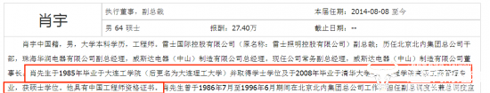 肖宇出生于1960年,今年64岁。公开信息显示,他在1985年毕业于大连工学院并取得学士学位,后在2008年毕业于清华大学经济管理学院高级工商管理专业,获硕士学位。但这是在职学位,能使用“毕业”这样的字眼吗?有硕士研究生毕业证吗?按照国家相关规定,2017年以后的EMBA(高级工商管理硕士)实行全国统一入学考试。反而来说,在此之前的高级工商管理硕士都没有实行全国统一入学考试,只有硕士学位,没有硕士研究生毕业证书,也就没有研究生学历,之前是什么学历,读完EMBA还是什么学历。