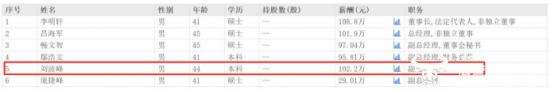 据东方财富网显示,刘波峰的薪酬是102.2万,在四位副总中最高,而且刘波峰仅工作三年,副总畅文智任职超过五年,他的薪酬是97.04万,鄢浩文担任副总4年,如今的薪酬是95.81万。总经理吕海军的薪酬为101.9万,公司还是很看重刘波峰的。