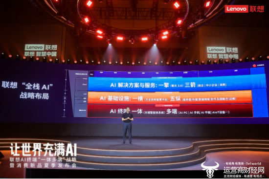 “‘一体多端’战略和发展理念,目标只有一个,那就是让用户在工作、学习和生活的不同场景下,都能获得‘个人AI助理’新体验。”除了在以“一体多端”战略领跑AI PC、AI手机、AI平板和AIoT等“AI内嵌的智能终端”外,联想还在“AI导向的基础设施”和“AI原生的方案服务”领域取得了明显突破,三者共同推进着联想的“全栈AI”战略布局。