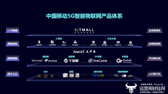 会上,中国移动展示了物联网产品体系经过3年的实践和持续迭代完成的五个升级。一是入口升级,研发新芯片、新模组、新OS内核,增强感知物理世界的能力;二是连接升级,从5G到“5G-A”,拓展了物联网应用的边界;三是平台升级,从过去三大平台到四张网,向下连接入口,向上使能应用;四是智能升级,当前已迈入AI+IoT的万物智联时代,所有的物联网产品都值得用AI来重新构建;五是生态升级,从线下渠道到IoT商城,实现线上线下融合销售。