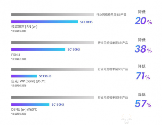 低噪声:为提升影像清晰度和质量,SC130HS配备了CMS2和CMS4两种相关多采样(CMS)模式,可进一步显著降低动态噪声。相较行业同规格单层BSI产品,SC130HS的读取噪声(RN)和PRNU分别降低约20%和38%。在60℃高温条件下,其暗电流(DC)、白点(White Pixel)分别相对降低约22%和71%,其DSNU降低约57%,不惧智能手机连续视频录制带来的高温干扰,呈现自然纯净、细节丰富的画面。