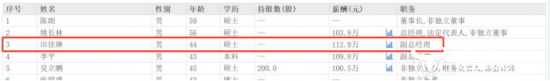 据东方财富网显示,总经理姚长林的薪酬是103.8万,而副总田佳琳的年薪是112.9万,在公司高管中是薪酬最高的,另一位副总李平的薪酬是109.8万,两位副总都是2021年上任的,其中李平2004年就加入公司了。