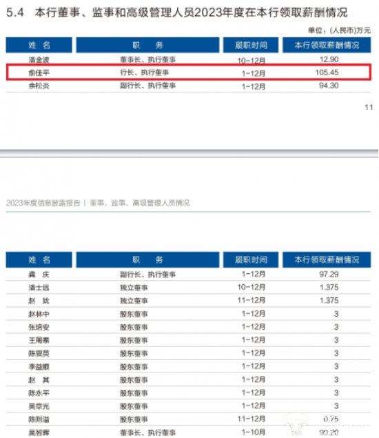 他还持有助理经济师资质。目前,他的职位包括第四届董事会执行董事和行长。2023年报显示,截至期末,俞佳平的持股数为77.25万,薪酬为105.45万,位居首位。