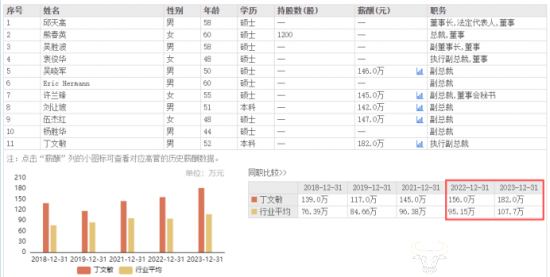 东方财富网显示,丁文敏去年从公司获得了182万元的薪酬,与2022年的156万元相比,上涨了26万元,是公司目前现任高管之中薪酬最高的。