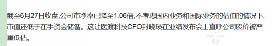 甚至有文章《医渡科技财报解析:成为AI医疗盈利第一股背后的逻辑》直言“这让医渡科技CFO封晓瑛在业绩发布会上直呼公司股价被严重低估”。但不知这句话是否有依据。