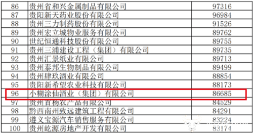 据贵州省工商联合会、省企业联合会联合发布的“2022年贵州民营企业100强”公示名单显示,小糊涂仙酒业(集团)有限公司2021年营收为8.67亿元。