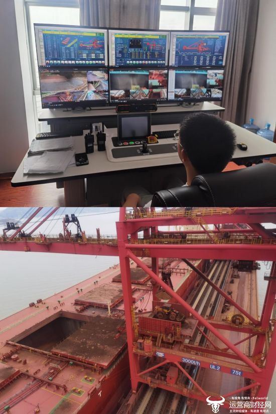 记者在岱山本岛的智控中心现场看到,一名卸船机司机正远程操控着32公里外的卸船机,码头虽然“无人”,但是作业流程格外流畅高效,没过多久便顺利完成了超远程卸船操作。