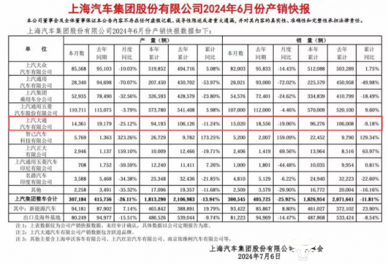 近日,上汽集团公布了6月份产销快报。报告显示,6月份上汽大通的销量为15020辆,同比下降19.06%;今年1-6月份上汽大通累计销量96276辆,同比下降9.18%。