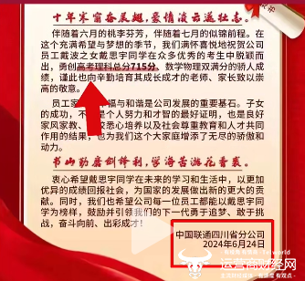 据了解,四川2024高考理科状元父母分别就职于联通和电信。两大运营商公司在得知这个好消息后,也是纷纷发布喜报祝贺公司员工子女获得骄人成绩!