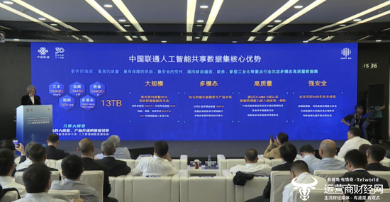 娄瑜在现场隆重推出中国联通人工智能共享数据集 AI Data,通过贡献联通的智慧,分享联通的方案,联合社会各方力量,探索共建共享人工智能数据集生态链。