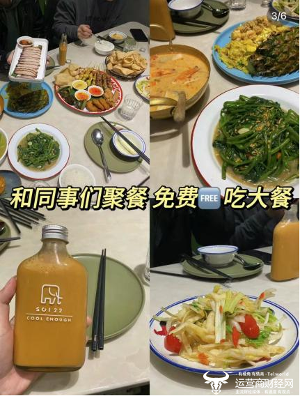 此外,网友还表示自己和同事们聚餐时候可以免费吃大餐,不知道是公司提供了这方面的福利还是同事私下互相宴请。