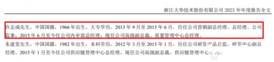 许志成任职经历并未公开。2013年9月至2015年6月,许志成历任大华股份营销副总经理、总经理、公司监事。