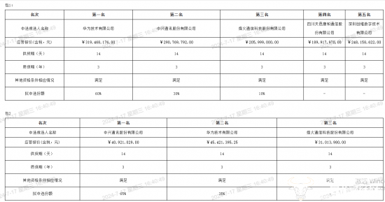第一批次采购项目中,华为以约1.08亿元的含税报价中标65%的份额,剩下35%的份额被中兴通讯拿下。而在第二批次采购项目中,中兴、华为再次中选,中标人数量增加为3家。