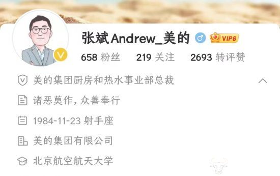 张斌此人比较低调,美的集团官方似乎并未披露他的出生年月、学历等信息。不过某社交平台上的个人简介一栏,张斌的出生年月显示为1984年11月,院校则为北京航空航天大学。