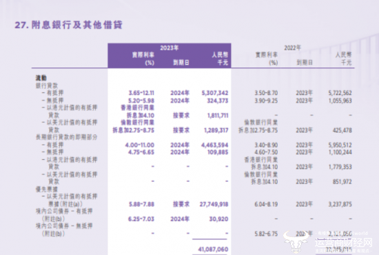 此外,合景泰富集团今年的债务情况也不乐观。根据公司发布的2023年年报,截至2023年12月31日,合景泰富的银行及其他贷款、优先票据及境内公司债券共410.87亿元,其中2024年到期的有102.36亿元。