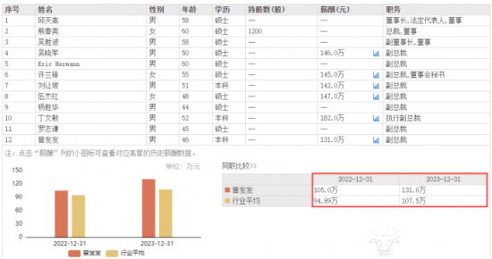 东方财富网显示,曾发发去年从公司获得了131.0万元的薪酬,与2022年的105.0万元相比,上涨了26万元。在公司副总裁之中,他的薪酬是最低的。