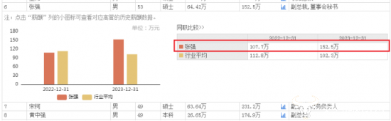 值得一提的是,根据东方财富网数据显示,张强2023年的年薪为152.5万,比另外两位副总低,其中宋柯为231.2万,黄中强为174.9万。不过和2022年的年薪107.7万相比涨薪了44.8万元。