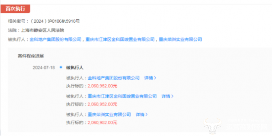 据了解,2024年7月18日,金科地产及其旗下控股子公司分别被咸阳市秦都区人民法院和上海市静安区人民法院执行,执行标的总额达236万元。