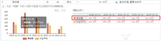 不过降薪的不止他一个,公司副总蒋俊雅也连续三年降薪,2023年她的年薪为61.55万元,2020年为287.4万元,三年共降薪225.85万元。