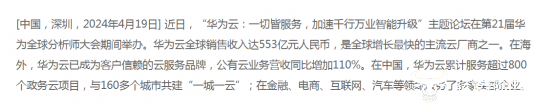 今年3月,华为发布2023年财报。其中,云业务增长较快,2023年实现营收553亿元,同比增长21.9%。Canalys最新数据显示,华为云继续保持中国第二大云厂商的地位,市场份额达到19%。2023年第四季度,华为云实现23%的同比增长率。