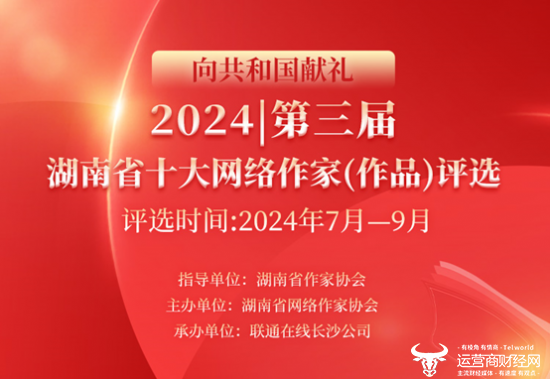 为深入贯彻新时代中国特色社会主义思想,落实省委建设文化强省的战略任务,献礼建国75周年,由湖南省作家协会指导,湖南省网络作家协会主办,联通在线长沙公司承办的“向共和国献礼——第三届湖南省十大网络文学作家(作品)评选”活动将于今年7月28日正式启动,面向广大网络作者开通报名参评通道。