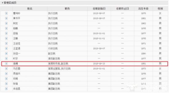根据东方财富网数据,目前公司已公开高管中,1981年出生的高曦是年龄最小的,同龄的还有和他同年进入公司的总裁黄书平。