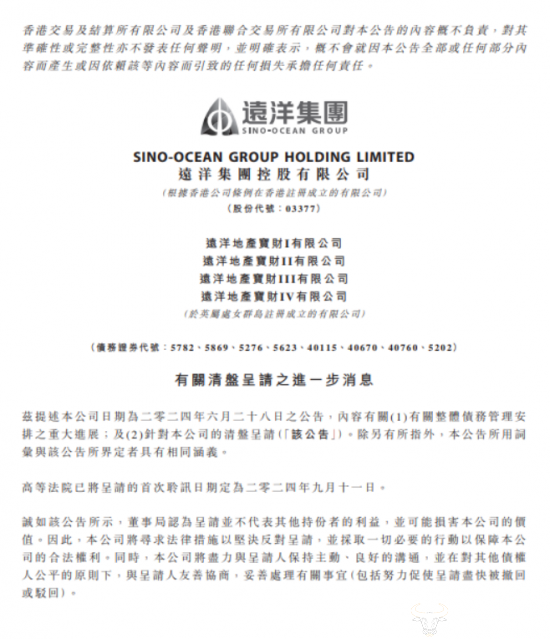 在6月27日,债权人小组已经提交了针对远洋集团的清盘呈请。